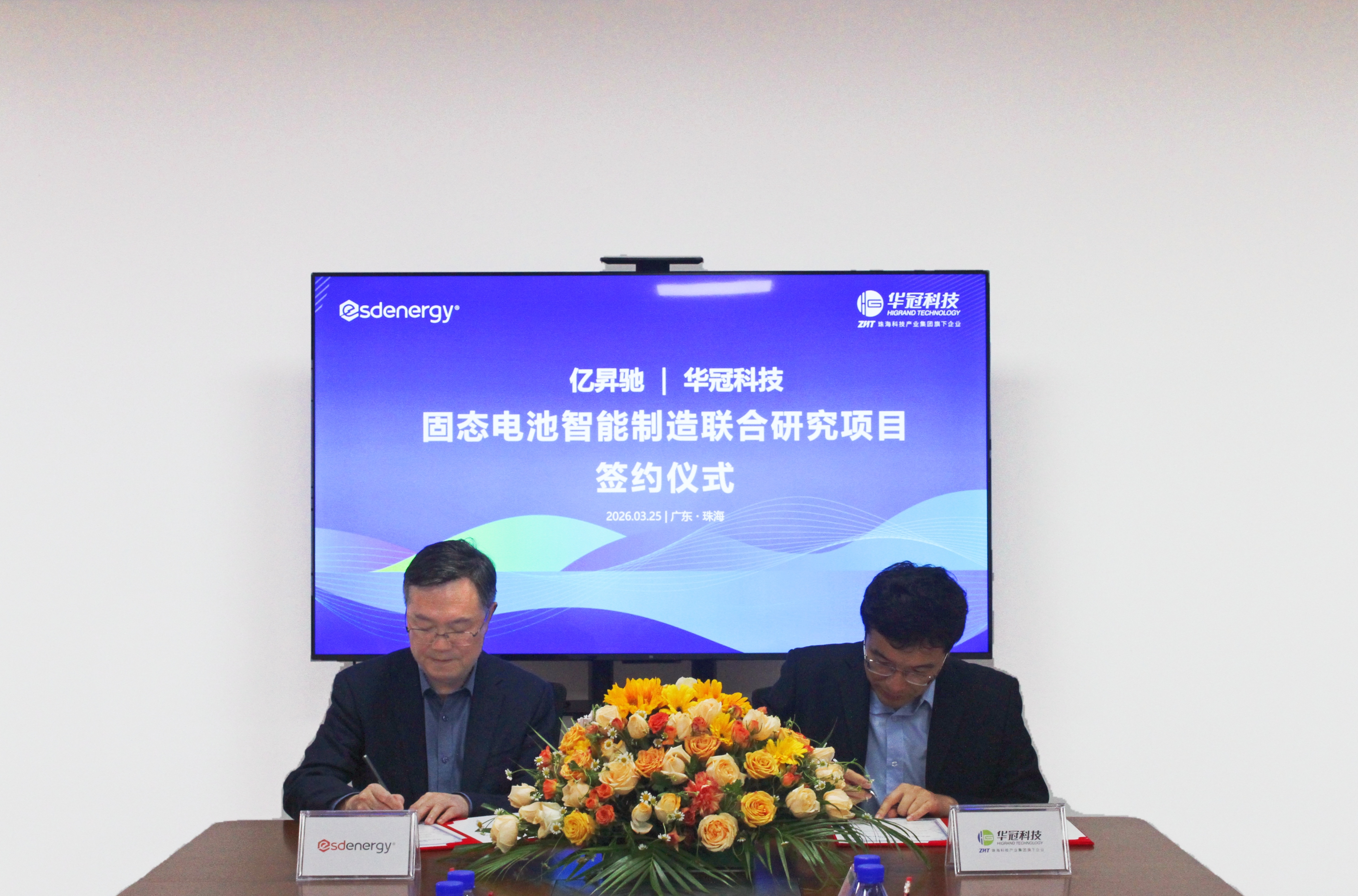 3月25日,围绕固态电池工程化与智能制造路径,绍兴亿昇驰新能源科技有限公司(以下简称“亿昇驰”)与珠海华冠科技股份有限公司(以下简称“华冠科技”)举行了联合研究项目签约仪式。该研究项目旨在探索从材料创新到工程化验证的关键路径,加速固态电池相关技术的产业化进程。